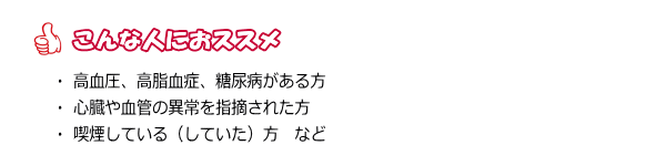 頸動脈超音波検査で、全身の動脈硬化の進行程度を予測できるとも言われており、コレステロール値の高い方、高血圧の方、糖尿病の方など、動脈硬化の進行が早くなると言われている方には必須の検査です。