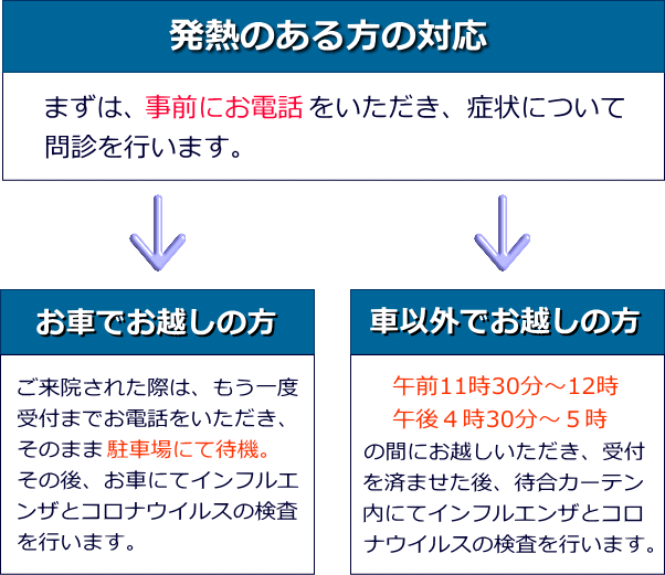 当院では現在、発熱の症状がある方の診察を行っておりますが、